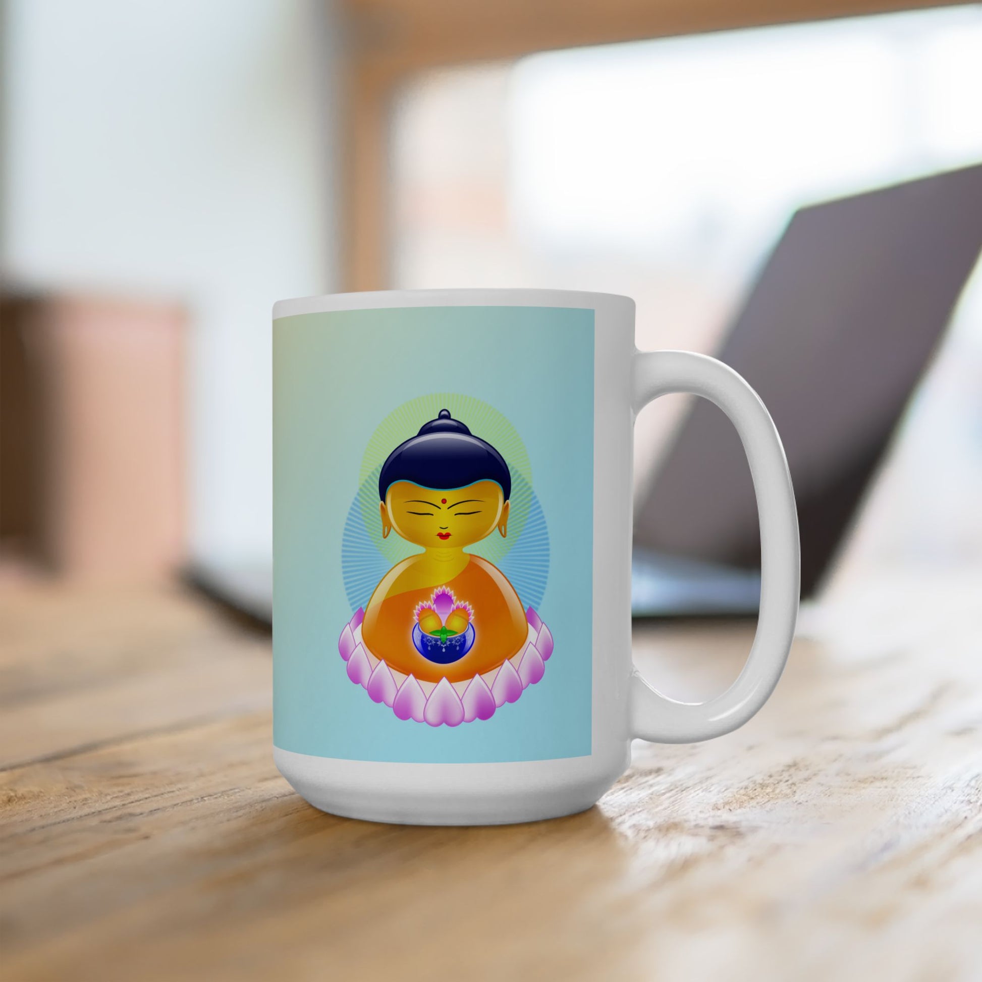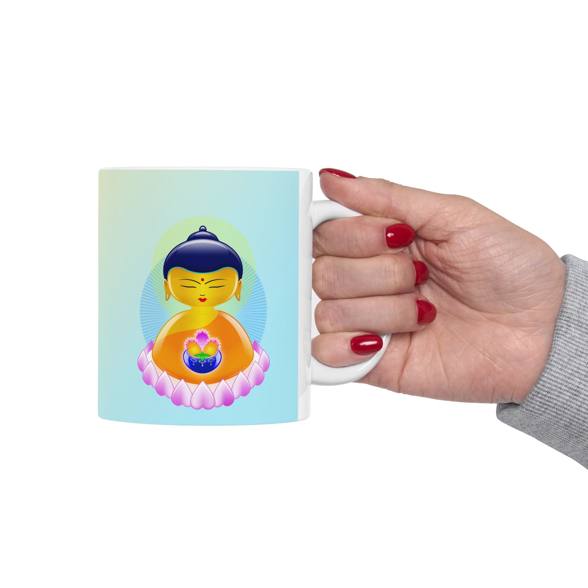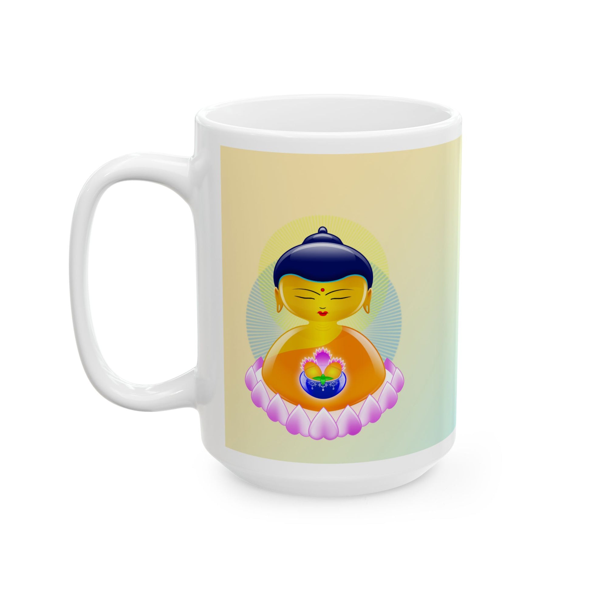 This elegant mug invites calm, clarity, and pause—with the timeless wisdom of Shakyamuni Buddha in your hands.